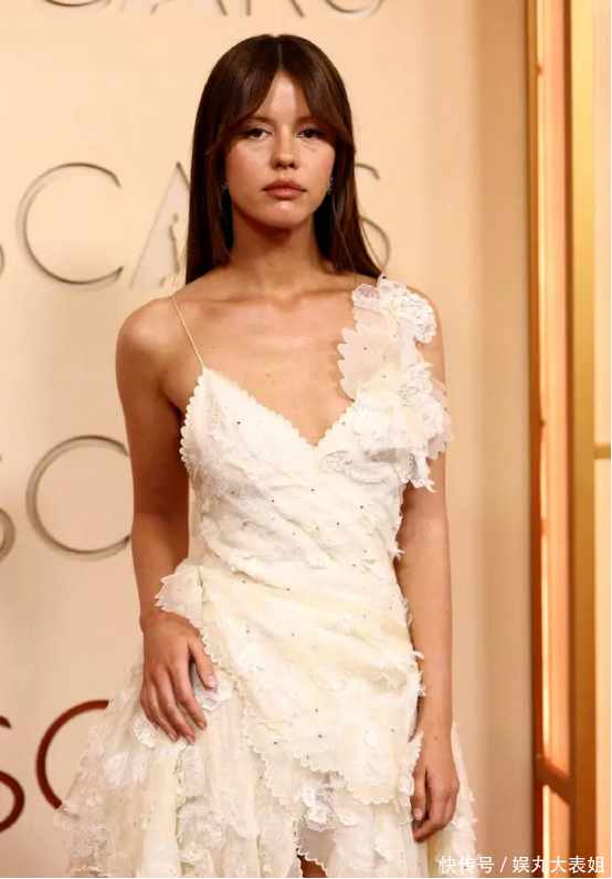米娅·高斯身着迪奥高级订制系列象牙白丝质欧根纱蕾丝花苞裙,宛如从童话中走出的精灵。裙身饰有精致的波点与蕾丝花卉刺绣,细腻的蕾丝纹理层层叠加,花苞式的剪裁灵动俏皮,既凸显了她的纤细身形,又增添了几分软萌精致的气质。妆容由迪奥美妆打造,与裙装风格完美契合,搭配简约珠宝,没有过多繁琐装饰,却将复古与灵动完美融合,举手投足间尽显温柔韵味,宛如行走的精致娃娃,让人一眼心动。